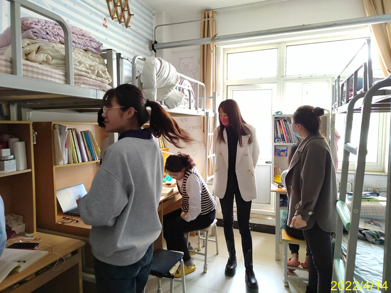 疫情当前,为进一步落实学校疫情防控常态化工作,深入了解学生思想动态及生活情况,增强学生的宿舍安全防范意识,加强宿舍安全管理工作,外国语学院于4月14日开展教师走宿舍活动,外国语学院党总支书记张廷国教授、团总支书记董瀚文老师、全体辅导员老师前往学生宿舍进行了走访与慰问,并给予学业、生活上的指导。
