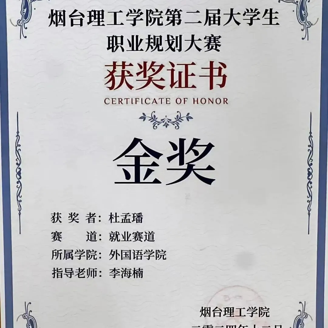 杜孟璠为中共预备党员,现任班级团支书,曾任学院团总支学生副书记,在校期间成绩斐然,斩获4项国家级奖项、6项省级奖项、5项校级奖项,获评4项荣誉称号,顺利考取英语专业四级证书,其中全国高校商业精英挑战赛一等奖、“互联网+”大学生创新创业大赛三等奖等荣誉含金量十足,是同学们身边的青春榜样。