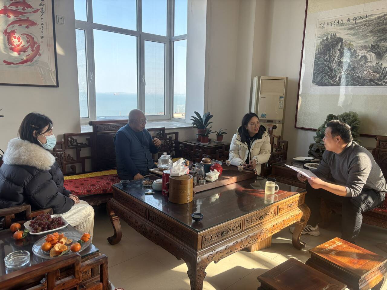 交流期间,烟台市鑫和建筑装饰有限公司张总、胡经理介绍了与我校的合作历程及近年行业发展趋势,我院臧晓梅主任、谭玮老师与企业负责人围绕专业建设、课程设置与企业需求融合等议题深入座谈,并表达了深化校企协同育人的积极意向。企业方同时建议,多组织学生深入企业一线实习实践,助力学生理论联系实际,也能降低企业新进人才培训成本,实现校企互利共赢。针对人才培养工作,企业方提出了具体建议,希望学校能够多组织日语专业学生深入企业一线开展实习实践活动,通过实地参与工作、接触行业实务,帮助学生强化理论联系实际的能力,提升专业应用水平,同时也能有效降低企业对新进人才的培训成本,实现校企互利共赢。
