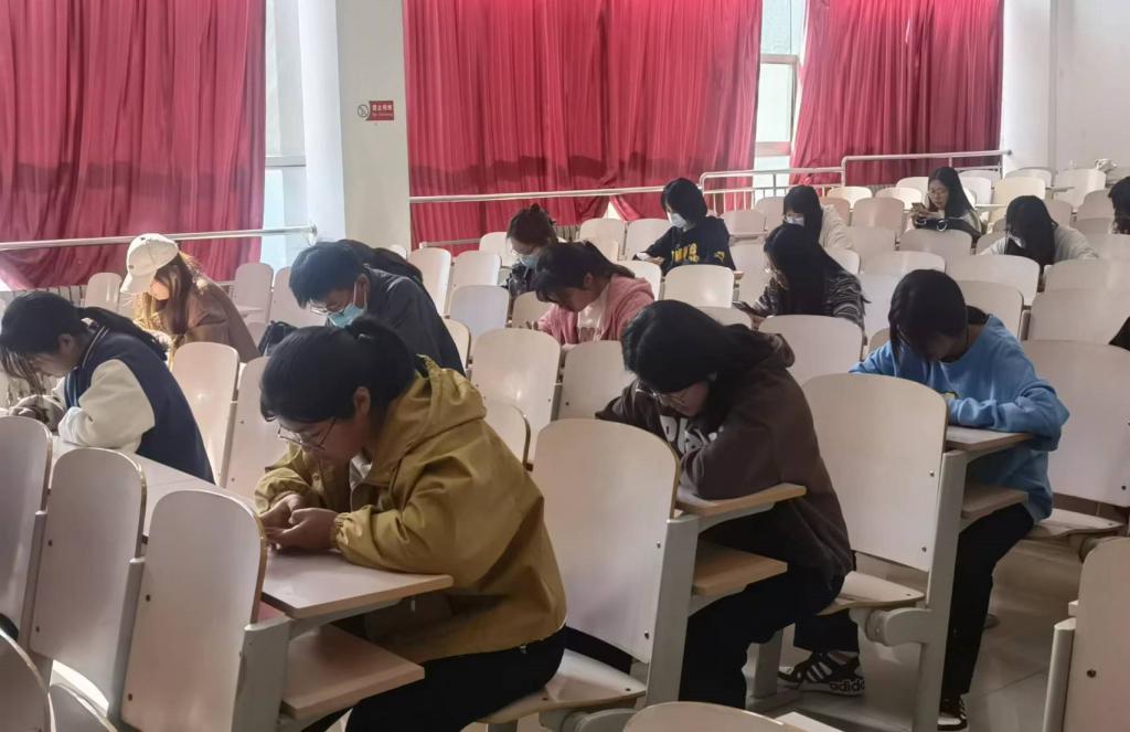 “学习强国”学习平台包含丰富的学习内容,聚合了大量时政新闻、文章、图片、视频、科技、人文、历史等。通过每日要闻,了解国家方针政策;通过答题比赛,丰富自己的理论知识;通过分享、收藏,不但为自己储备精神食粮,也为大家传送知识能量。本次比赛通过“学习强国”APP挑战答题板块,以线上答题的形式进行,参赛选手在“我要答题”中的“挑战答题”板块进行答题。采用2轮答题制,两轮成绩相加得到总成绩,按总成绩由高到低排序。比赛现场,选手们严格遵守比赛纪律,全神贯注、争分夺秒、快速作答,从同学们全神贯注的眼神中看出了大家的沉着冷静。经过激烈角逐,最终三名优秀同学脱颖而出,第一名是外2004-1韩越娟,第二名是外2202-3孟祥茹,第三名是外2202-3田俊雨。