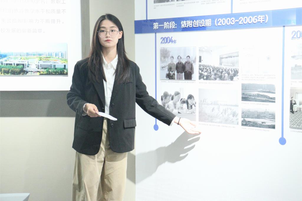 校史馆作为承载学校精神内核、传承校园文化的重要阵地,系统浓缩了学校办学以来的关键历程与珍贵记忆。新生们怀着崇敬与期待的心情,在负责人的引导下有序进入展厅。馆内陈列的历史图片、实物展品与文献资料,以直观生动的方式,清晰勾勒出学校从创建之初到如今蓬勃发展的宏伟轨迹。此次活动由外国语学院学生担任讲解员。在讲解员细致的双语讲解下,新生们逐一了解学校不同发展阶段的重大事件、办学成果与特色亮点,在双语语境中深刻感悟历代师生扎根教育、砥砺奋进的精神品格,对学校积淀的深厚文化底蕴形成了更具象、更深刻的认知,为即将开启的大学生活注入了坚定信心与奋进力量。