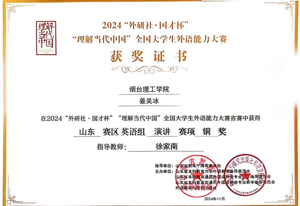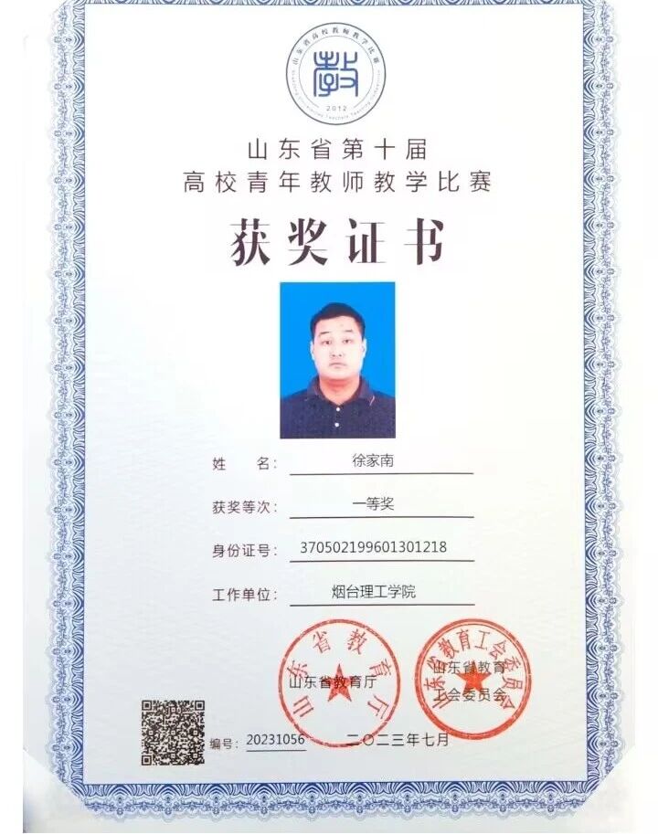 徐家南老师潜心教学,勇于创新,主讲课程《基础英语1》获批第三批山东省一流课程立项;注重实践,以赛促学,指导学生获高等教育学会学科竞赛目录赛事省部级获奖两项,在外国语学院学科竞赛工作中起模范带头作用;关爱学生,业绩突出,两学期教学评价百分位次均位于前90%;发挥特长,传帮互助,助力我校教师教学竞赛获得佳绩。发挥专业特长,多次为董事会、校领导外宾接待承担口译工作。