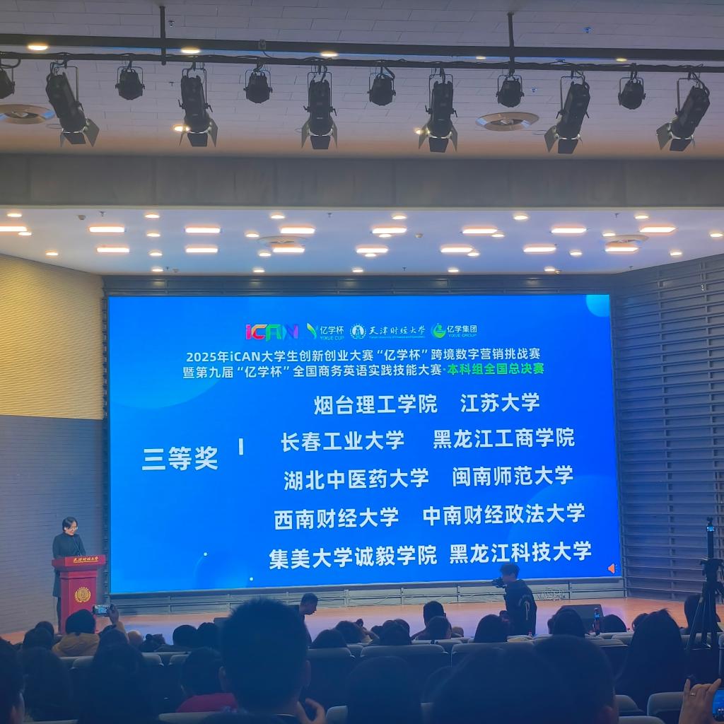 近日,2025年ICAN大学生创新创业大赛“亿学杯”跨境数字营销挑战赛暨第九届“亿学杯”全国商务英语实践技能大赛落下帷幕。烟台理工学院学子在全国及省级赛场表现抢眼,一举斩获本科组全国总决赛三等奖、高职组全国总决赛三等奖、本科组山东省赛二等奖等多项荣誉,充分展现了我校数智型商务英语人才培养的扎实成效与学子们过硬的专业素养。