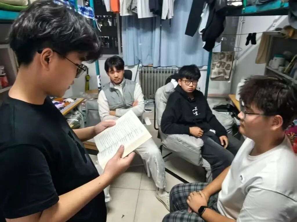 学院学生干部团队分工协作,开展形式多样、内容丰富的特色宣讲活动。在双语阅读分享环节,学生干部们精选中外经典篇目,通过中英文对照朗读、段落深度解析的方式,带领同学们沉浸式感受不同语言的文字魅力;经典外文著作赏析活动则聚焦文学巨匠的代表作品,从时代背景、人物塑造、叙事手法等角度切入,挖掘文字背后的文化内涵与思想价值。同时,他们还组织趣味外语阅读问答、短剧演绎等互动环节,让宿舍阅读氛围更活泼。学生干部们结合自身的外语学习与阅读积累,向同学们分享高效阅读技巧、外文词汇积累方法,以及文学作品背后鲜为人知的文化故事,带动同学们在共读共研的过程中提升语言应用能力,增进彼此的思想交流与同窗情谊。