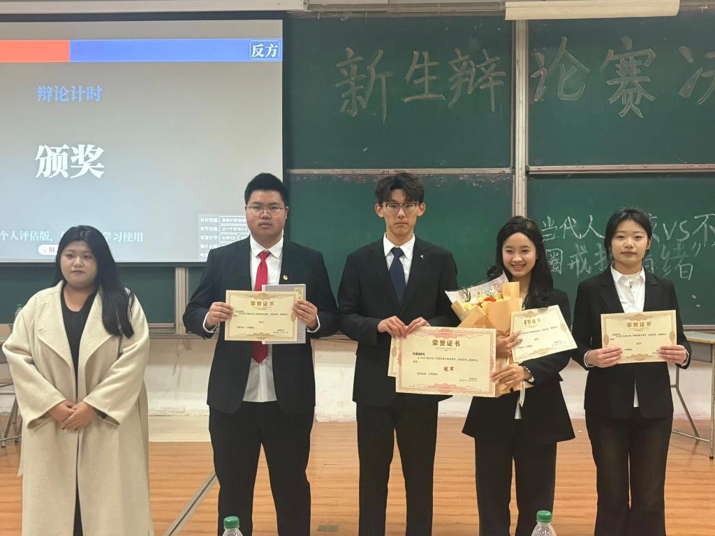 为锤炼同学们的逻辑思辨素养、提升语言表达能力,我校校级辩论赛近日圆满落幕。外国语学院辩论队凭借扎实筹备与出色发挥摘得桂冠。