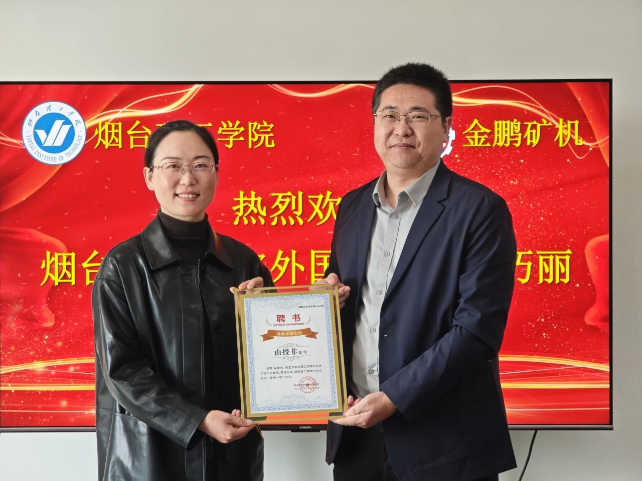 座谈结束后,于院长代表学院为烟台金鹏矿业授予“教学实习基地”牌匾,推动实践教学与产业需求深度融合,同时为于建环董事长等四人颁发“产业教授”聘书。双方将共同筛选企业典型生产项目作为教学案例,推行“真设备、真项目、真要求”的教学模式,切实提升学生专业技能与岗位适配度。