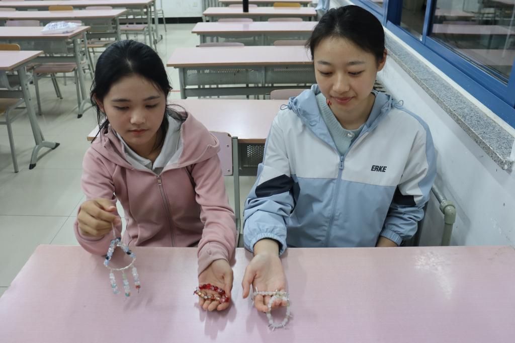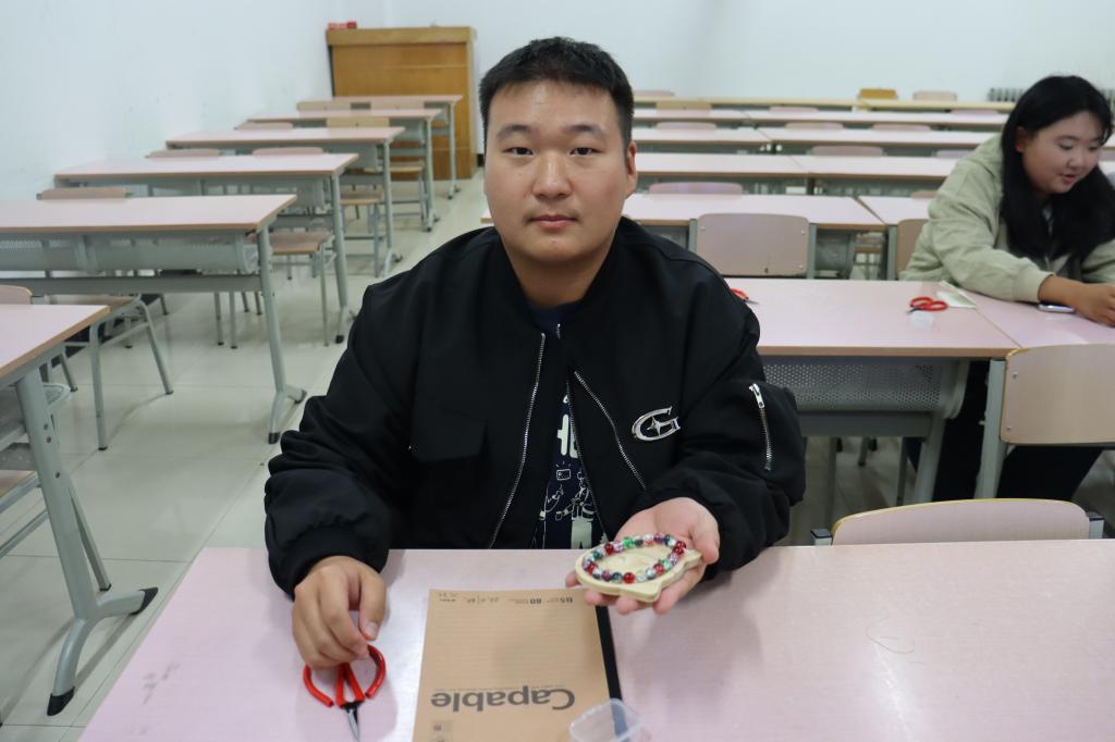为丰富心理健康教育形式,激发同学们的情感表达与创造力,10月16日,外国语学院在二教311举办“串手链,系心语”主题心理活动,将艺术创作与心理教育相融合,引导同学们以轻松互动的方式关注自我心理状态。