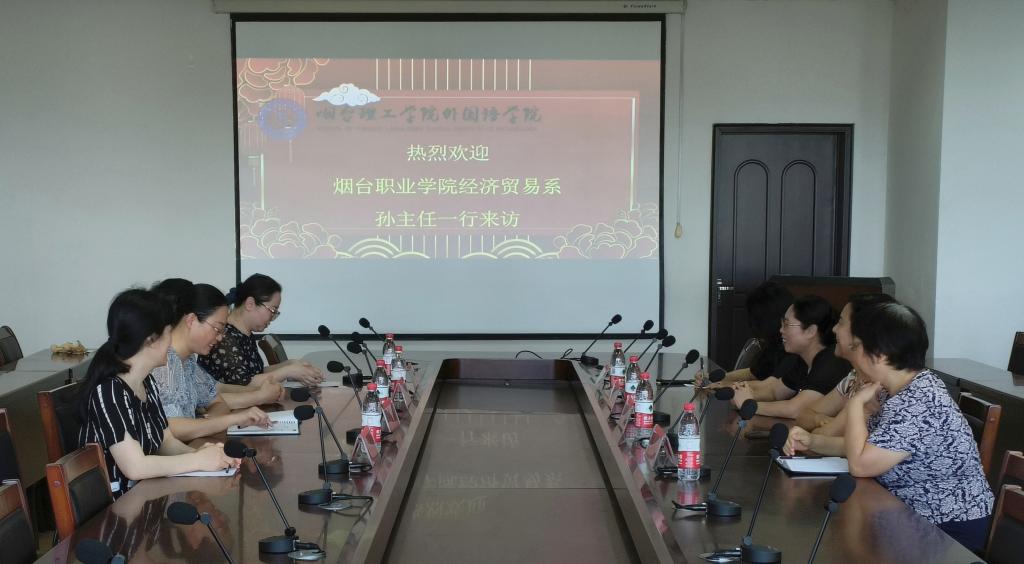 2023年6月30日,烟台理工学院外国语学院与烟台职业学院经济贸易系开展学术交流会。本次会议由外国语学院院长刘白玉教授、常务副院长于巧丽老师、党总支副书记赵蓓老师、院长助理张丽老师、商务英语系主任薛桂丹老师、副主任潘晓琳老师,来自烟台职业学院经济贸易系孙玲副主任系党总支副书记、教学胡志英副主任、综合科(培训科)张媛科长以及商务外语教研室王桂贤主任出席。