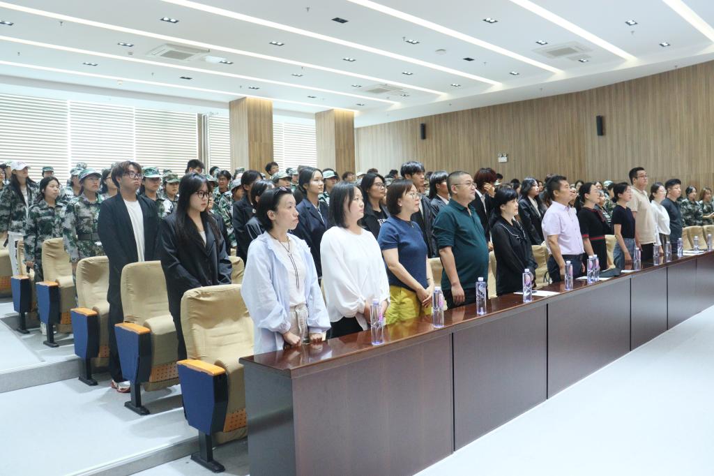 金秋送爽,梦想启航。9月26日,外国语学院于三教六楼报告厅举办2025级新生开学典礼暨军训总结大会。外国语学院常务副院长于巧丽,院长助理张丽,党总支副书记陈秀慧,国际语言服务中心主任孙万茂,英语系主任徐家南,日语系主任臧晓梅,辅导员郭亚军,新生班主任赵莹、崔晓冉、赵凤敏,教师张一帆,2025级班助、学生会主席团以及2025级全体新生参加,典礼由党总支副书记陈秀慧主持。