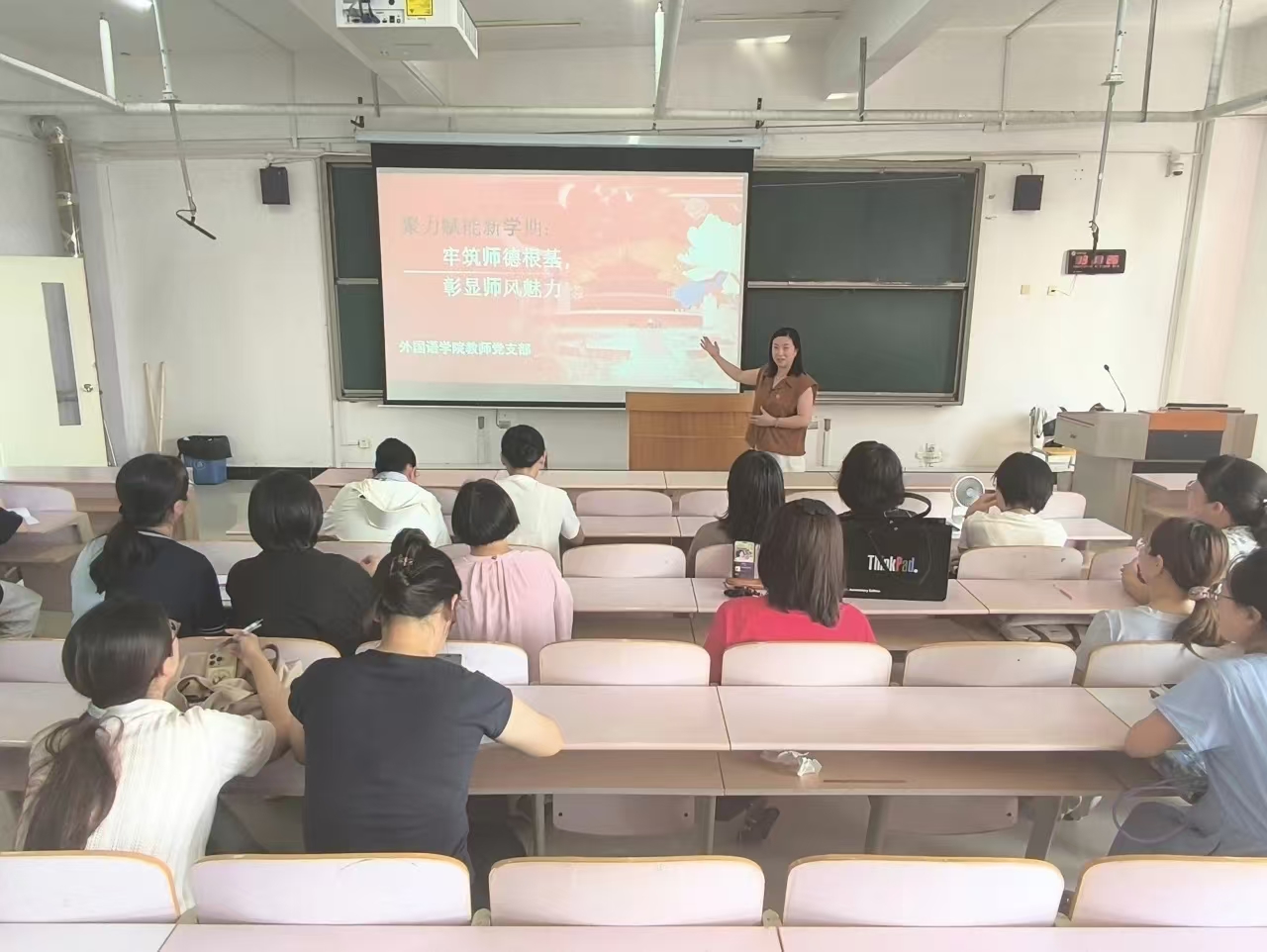 为深入学习贯彻师风师德要求,凝聚教师队伍育人力量,扎实推进学院师德师风建设工作,9月12日,外国语学院于二教605组织开展教师师风师德建设活动,活动由孟范英老师主持,全院教师参与。