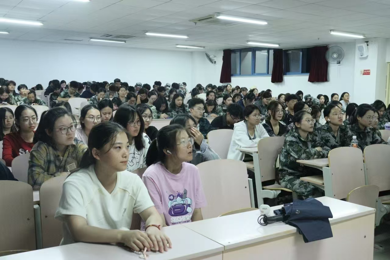 为深入普及国防知识,强化同学们的国防观念,厚植爱国情怀,凝聚强国强军的青春力量,9月20日,外国语学院组织2025级新生于二教409集中观看“爱我国防”主题演讲会。