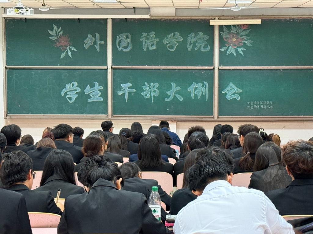 为加强学院学生会组织建设等工作,10月15日,外国语学院于二教115召开学生干部大例会。学院辅导员郭亚军,主席团、团总支及学生干部出席本次会议。