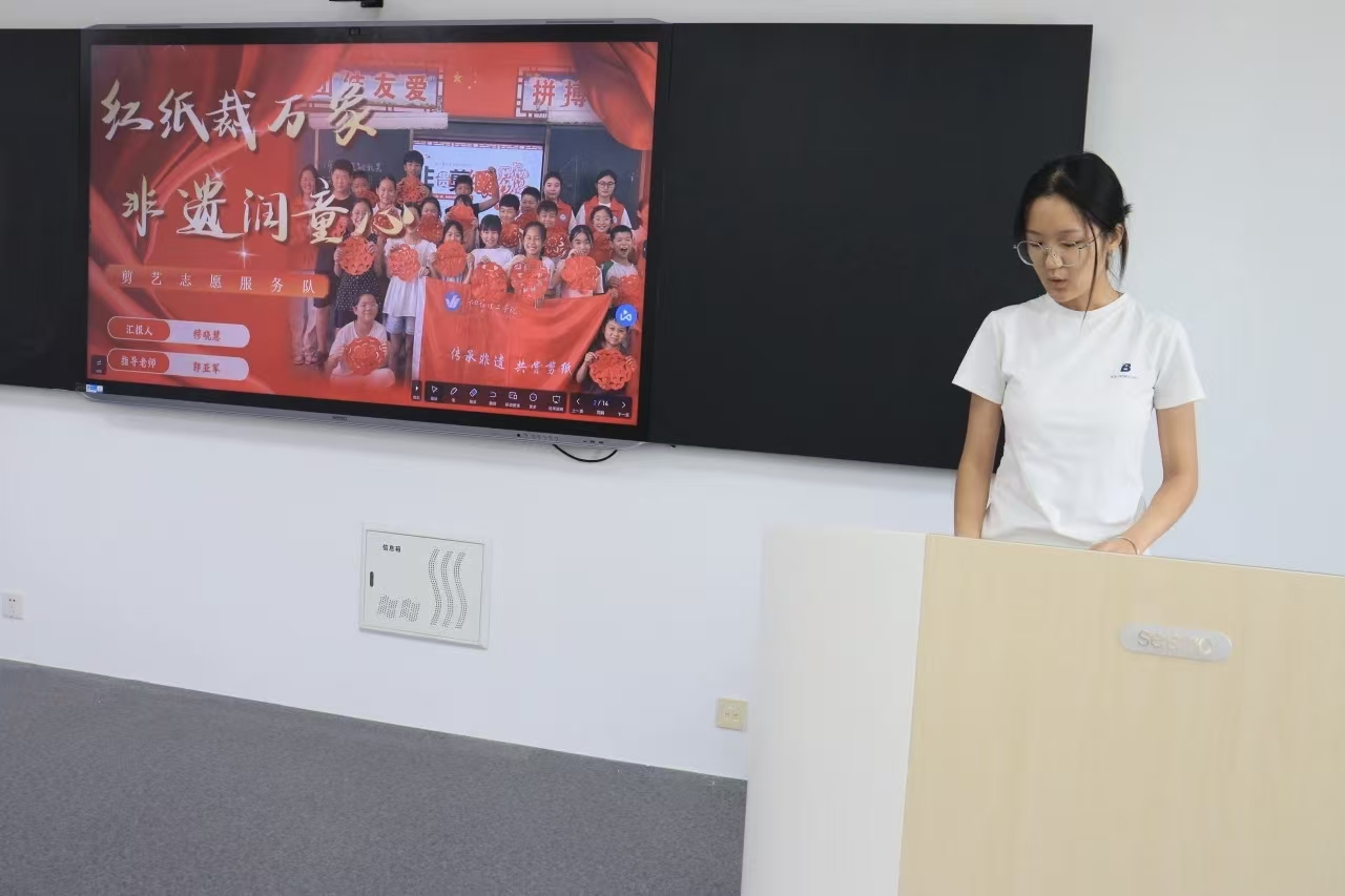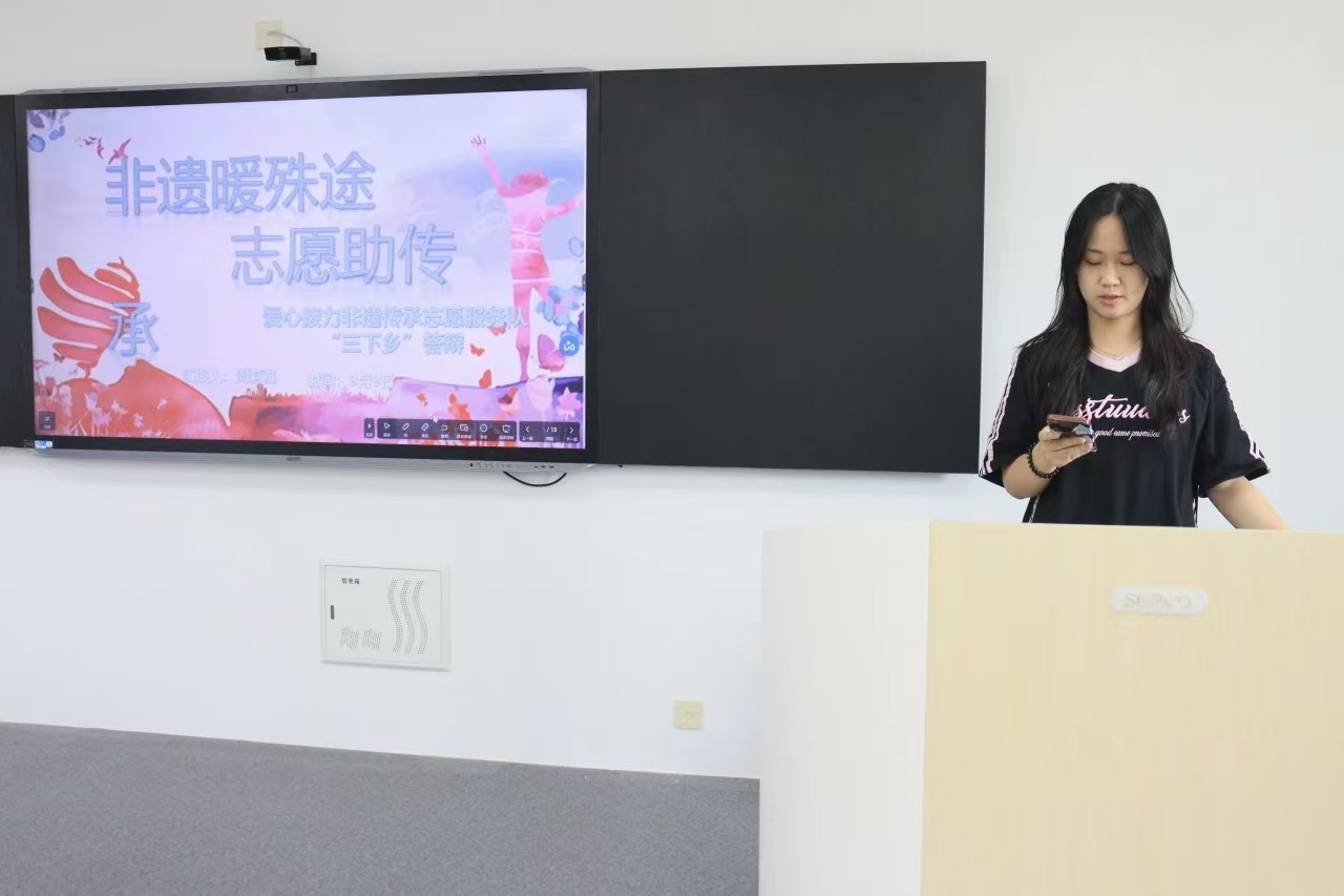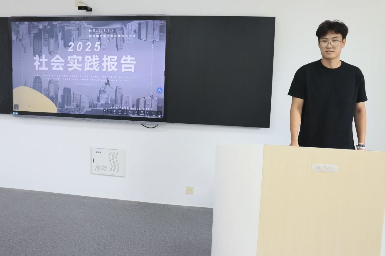 本次答辩会共15支实践队参与,实践主题丰富多样,涵盖“乡韵复兴”、“智慧助老”、“情暖助弱”等多个主题。答辩过程中,各团队以PPT汇报形式,从实践背景、内容、成果、感悟以及反思五方面展开分享。实践队代表依次上台发言,语调沉稳有力,节奏张弛有度,整体表达逻辑清晰、仪态大方,既展现出外国语学院学子的专业素养,也彰显了当代青年在实践中磨砺成长的精神风貌,赢得现场阵阵掌声。